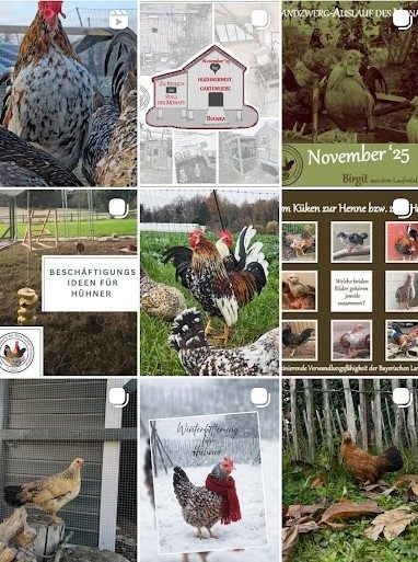 Ein zentrales Element unseres Vereinslebens ist unser wachsender Instagram-Auftritt. Mit kreativen Beiträgen, Einblicken in Zucht und Haltung sowie den beliebten täglichen Hühnerweisheiten konnten wir eine beachtliche Reichweite erzielen. Instagram ist heute einer der wichtigsten Kanäle, um Wissen zu teilen, die Rasse bekannter zu machen und unsere Gemeinschaft sichtbar zu präsentieren. Das Engagement so vieler Mitglieder macht diesen Erfolg erst möglich.